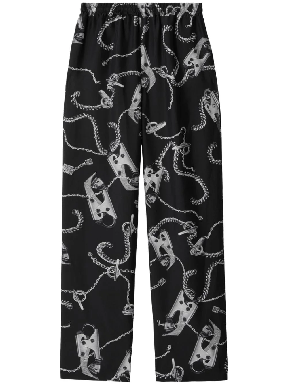 Knight Hardware silk trousers Highlights - Black/grey - Silk - All-over graphic print - Elasticated waistband - Straight leg Imported Composition Lining: Viscose 100% Outer: Silk 100% Washing instructions Dry Clean Only