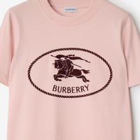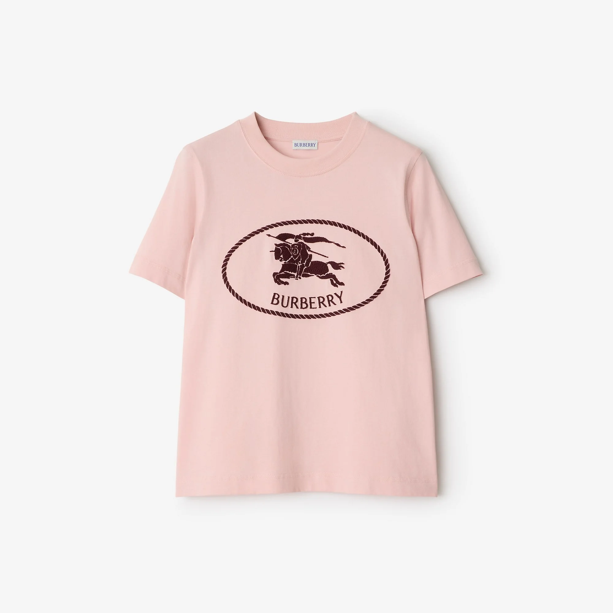 Product Details A T-shirt in lightweight cotton jersey, cut to a slim fit. The style is embroidered with our Knight stamp, an archival motif first seen on Burberry bags in the 1980s. - Rib-knit neckline - Embroidered Equestrian Knight Design at chest - Slim fit: this style is cut to a fitted silhouette. Fits true to size, take your normal size. - Machine wash - Item 81109251 Size & Fit - Length: 61cm/24in (size UK S) - Model’s height: 180cm/5ft 11in. Model wears size UK S Fabric & Care - 100% cotton - Trim: 97% cotton, 3% elastane - Made in Portugal