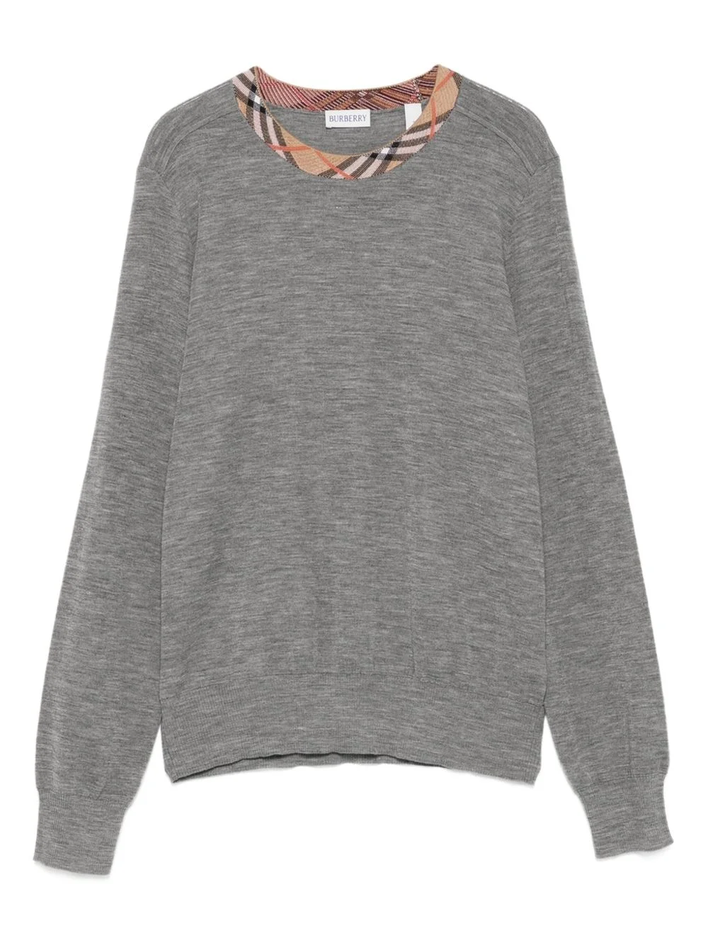 check-trimmed wool sweater Highlights - Grey - Wool-blend - Round neck - Long sleeves - Burberry-check collar Imported Composition Cotton 93%, Wool 50%, RWS Wool 50%, Polyamide 6%, Elastane 1% SIZE & FIT Model measurements Height 5 ft 10 in(1.78 m) Bust/Chest 33.46 in(85 cm) Hips 36.22 in(92 cm) Waist 23.22 in(59 cm) Washing instructions Dry Clean Only