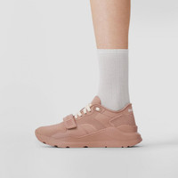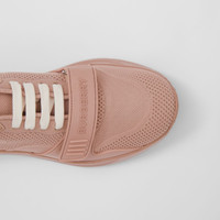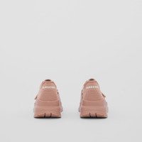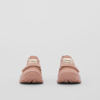 PRODUCT DETAILS A chunky sneaker in knitted stretch nylon and smooth leather, tagged with our logo. The design is set on an accentuated, curved sole. Upper: 88% polyamide, 7% elastane, 5% calf leather Trim: 35% polyester, 35% thermoplastic polyurethane, 12% viscose, 10% polyurethane, 8% cotton Lining: 50% sheep leather, 18% polyamide, 18% polyurethane, 14% EVA Sole: 100% rubber Lace-up and Velcro tab closure Embroidered Burberry lettering at heel and strap Made in Italy 80526231