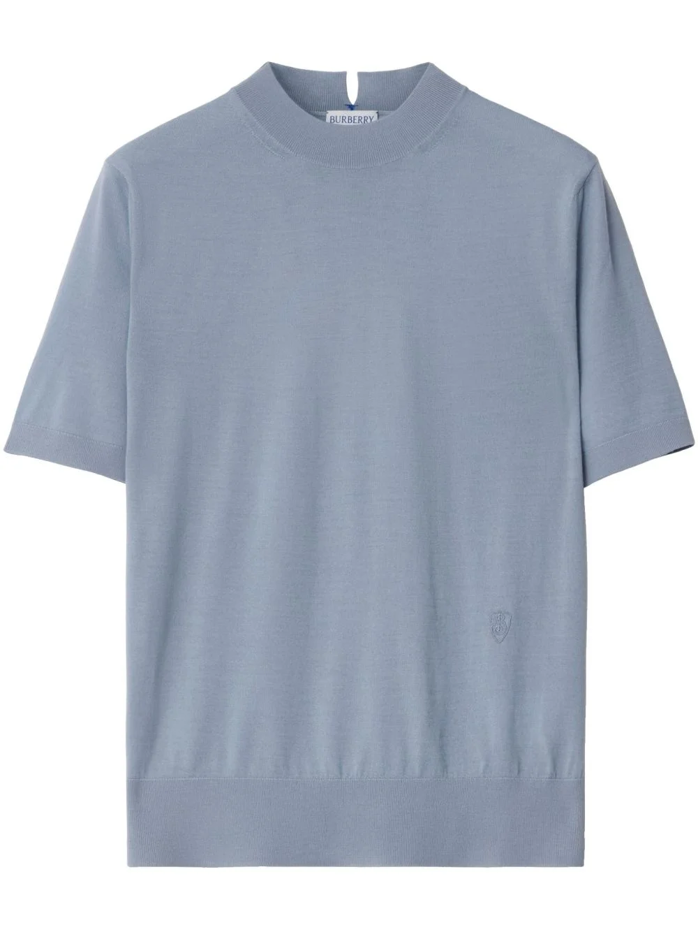 knitted top Highlights - Blue - Mock neck - Embroidered logo to the front - Short sleeves Made in Italy Composition Wool 100%