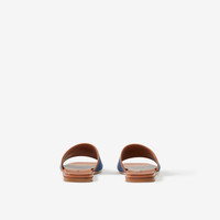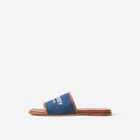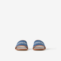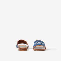 Label Print Denim and Leather Slides