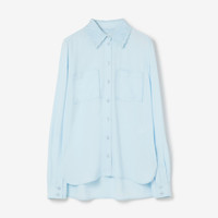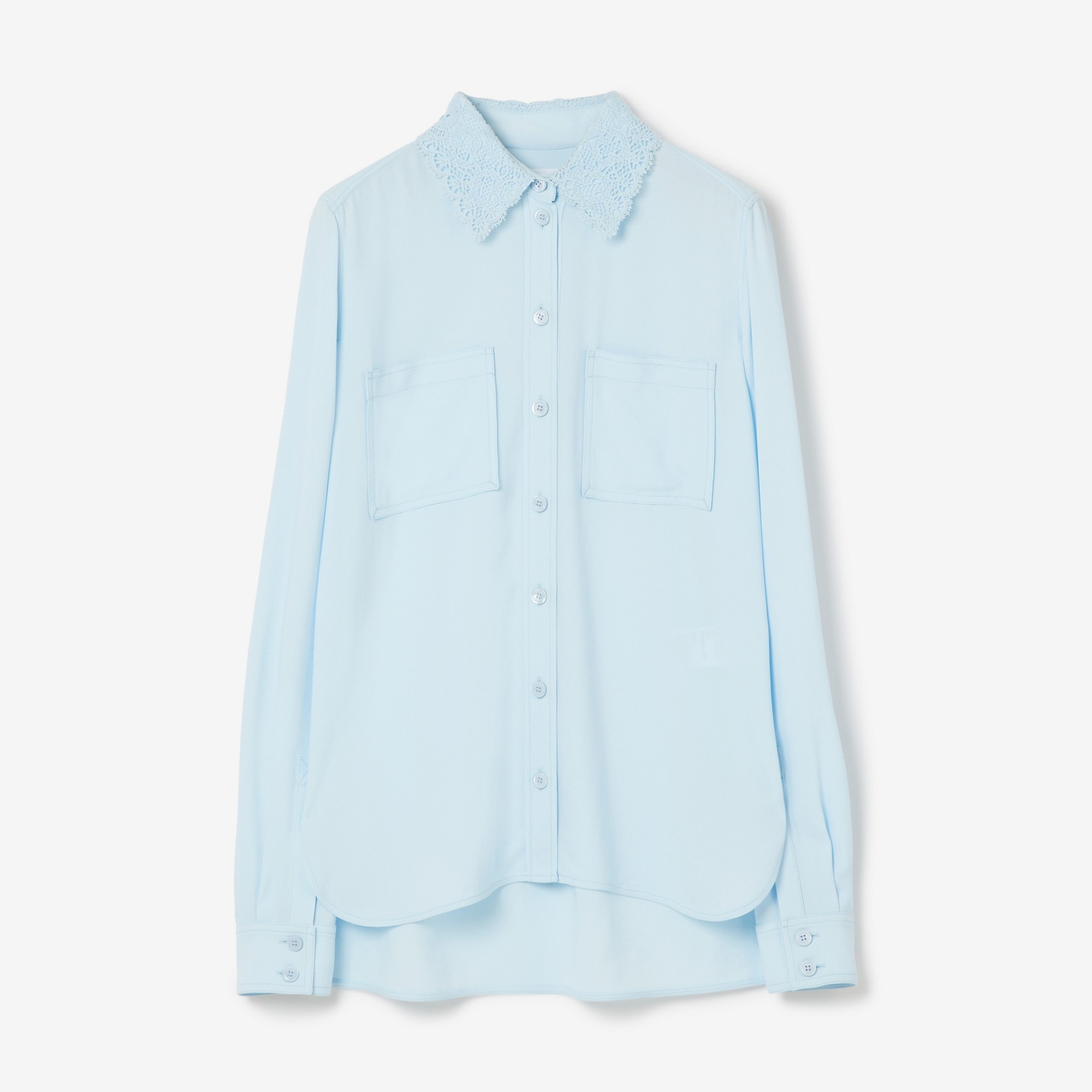 PRODUCT DETAILS A shirt in Italian-woven viscose, cut to a relaxed fit. The design is styled with a lace point collar and a stepped hem. - Shirt length: 74cm/29.1in. This is based on a size UK 6. Relaxed fit. This style is cut to a loose silhouette. 100% viscose Trim: 100% polyester Buttons: mother-of-pearl Long sleeves with buttoned cuffs Button closure Chest patch pockets Specialist dry clean Imported Item 80677891