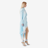 PRODUCT DETAILS An Italian-crafted reconstructed gown in crinkle-effect satin. The fitted style features a button-down collar, layered bra top and lace trims. The design is part of the Burberry Spring/Summer 2023 runway collection. - Gown length: 113cm/44.5in. This is based on a size UK 6. 100% viscose Trims: 63% cotton, 37% polyester; 51% viscose, 49% polyamide; 100% polyamide Buttons: mother-of-pearl Button-down collar Long sleeves with buttoned cuffs Press-stud gusset Specialist dry clean Made in Italy Item 80687431