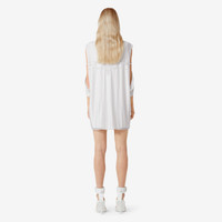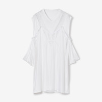 PRODUCT DETAILS A reconstructed T-shirt dress in stretch jersey, styled with a rib-knit collar, cut-out sleeves and lace panelling. The design is part of the Burberry Spring Summer 2023 runway collection. - Dress length: 80cm/31.5in. This is based on a size UK 6. - Model’s height: 180cm/5ft 11in. Model wears size UK 6. 85% viscose, 15% elastane Trim: 92% viscose, 6% polyamide, 2% elastane Dry clean with any solvent except perchloroethylene Made in Italy Item 80674991