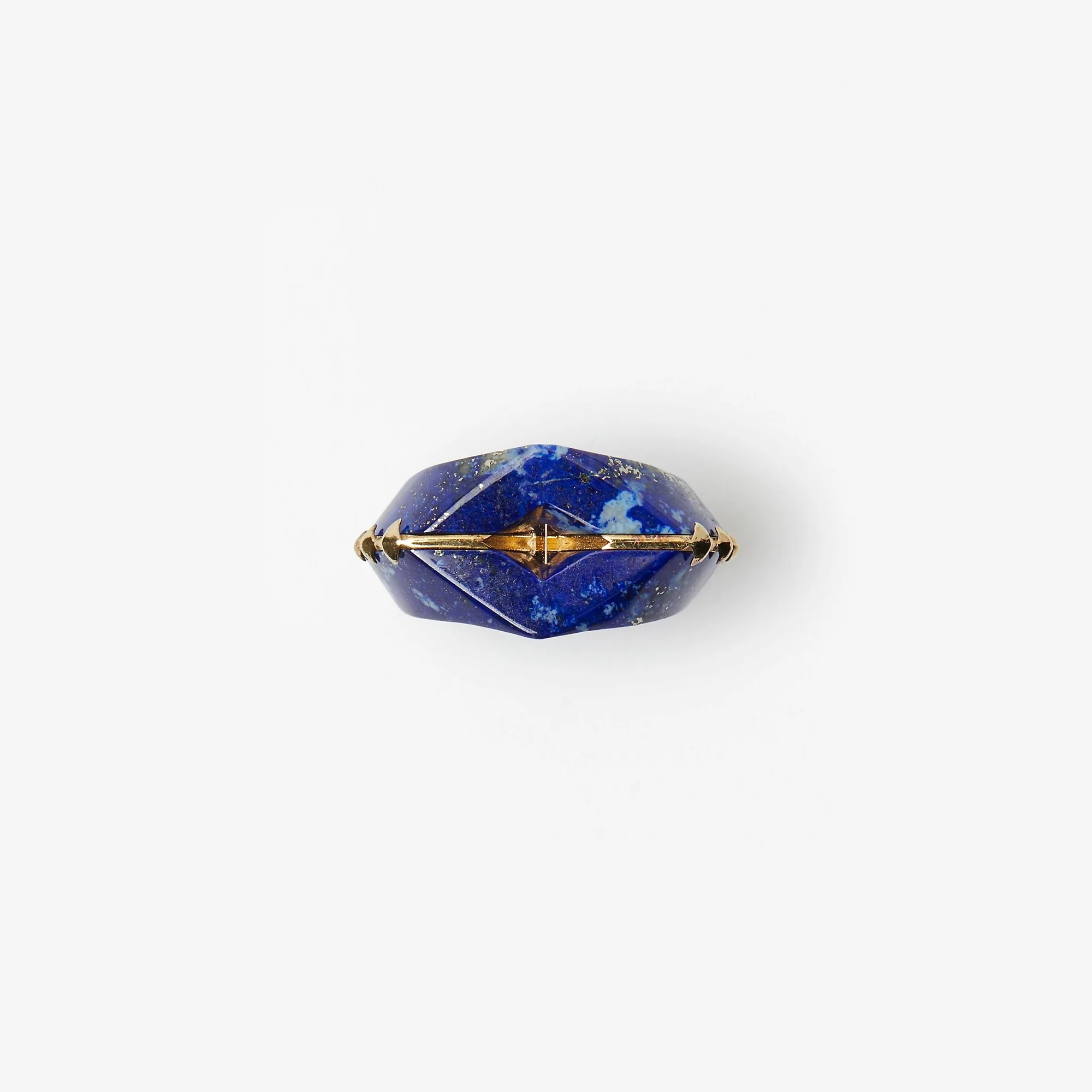 Product Details A ring made in Italy from sterling silver with gold plating. The design features carved lapis lazuli and a hollow cutout. - Engraved Burberry lettering at inner - Size 49: 15.6mm - Size 51: 16.2mm - Size 53: 16.9mm - Size 57: 18.2mm - Size 59: 18.8mm - Size 61: 19.4mm - Item 80796781 Fabric & Care - 100% sterling silver with gold plating - Embellishment: 100% lapis lazuli - Made in Italy