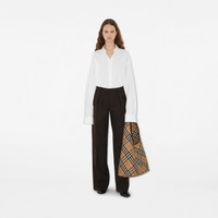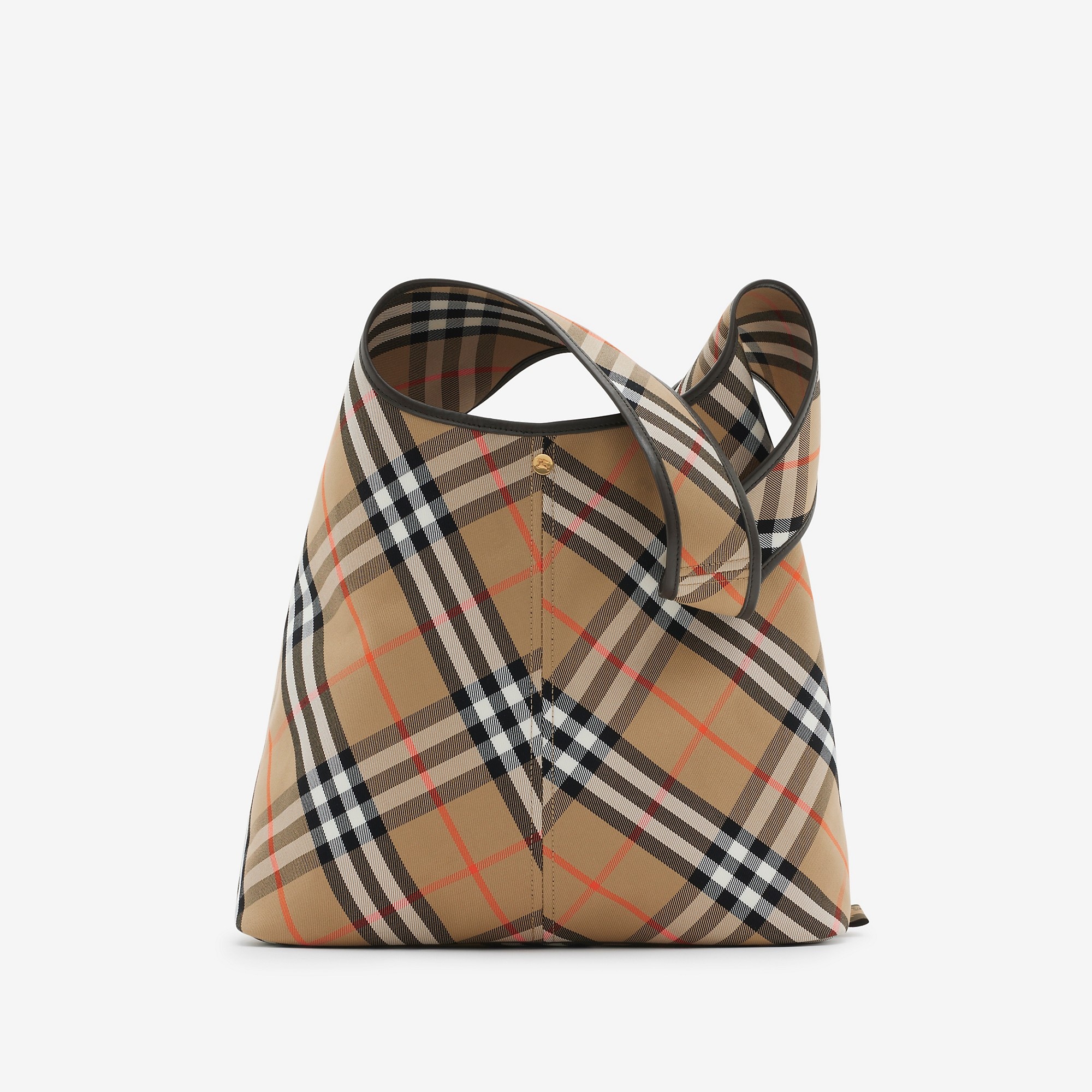 Product Details A softly-structured shoulder bag made in Italy from cotton twill, woven with the Burberry Check. The lightweight style is unlined, trimmed with smooth calf leather, and features a detachable zip pouch. Part of Burberry Classics, wardrobe foundations with a unique Burberry slant. - Top handle - Press-stud closure - Hand-painted edges - Brushed metal hardware - Detachable pouch - Unlined - Comes with a dust bag - Item 80941451 Size & Fit - 36 x 18.5 x 58cm/14.2 x 7.3 x 22.8in. Handle drop: 32.5cm/12.8in Fabric & Care - 100% cotton - Trim: 100% calf leather - Made in Italy
