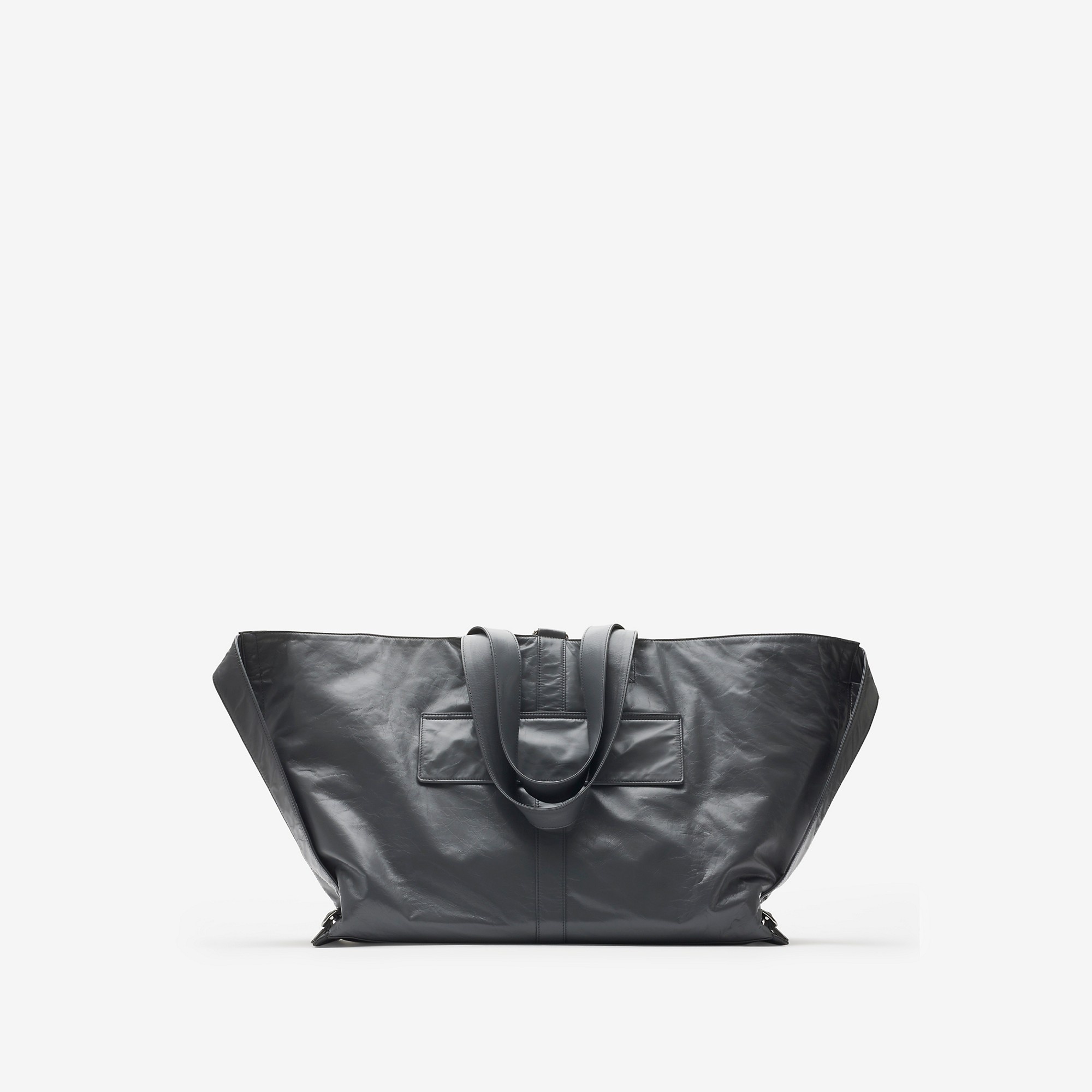 Product Details A slouchy bag made in Italy from shiny calf leather, lined with calf suede. Inspired by tents from the Burberry archive, the spacious design features side zips and B buckle straps to adjust the shape. The open top is secured with a horse-shaped dog clip. Leather top handles Dog-clip closure Exterior flap pocket Hand-painted edges Brushed metal hardware Detachable zip pouch Suede lining Comes with a dust bag - Item 80980911 Size & Fit - 69 x 25 x 36.5cm/27.2 x 9.8 x 14.4in . Handle drop: 25cm/9.8in Fabric & Care - 100% calf leather - Lining: 100% calf suede - Made in Italy