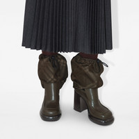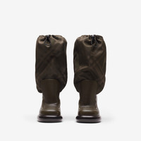 PRODUCT DETAILS A pair of boots made in Italy in smooth calf leather, with a nylon blend upper jacquard-woven in a seasonal check. The style features a drawcord to adjust the shape and is set on a chunky curved sole embossed with our Equestrian Knight Design. - Heel height: 9.5cm/3.7in Upper: 60% calf leather, 25% polyamide, 15% polyester Trim: 40% polyester, 30% brass, 30% polyamide Lining: 50% calf leather, 25% polyamide, 15% polyester, 10% goat suede Sole: 100% leather Made in Italy Item 80957071