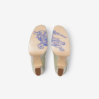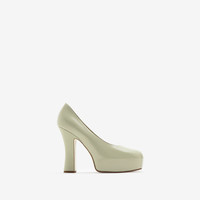 PRODUCT DETAILS Italian-made platform pumps in shiny calf leather. The design is set on a block heel and leather sole embossed with the Equestrian Knight Design. - Heel height: 13cm/5.1in Upper: 100% calf leather Lining: 85% sheep leather, 10% cotton, 5% goat leather Sole: 100% leather Heel: 100% calf leather Made in Italy Item 80802271