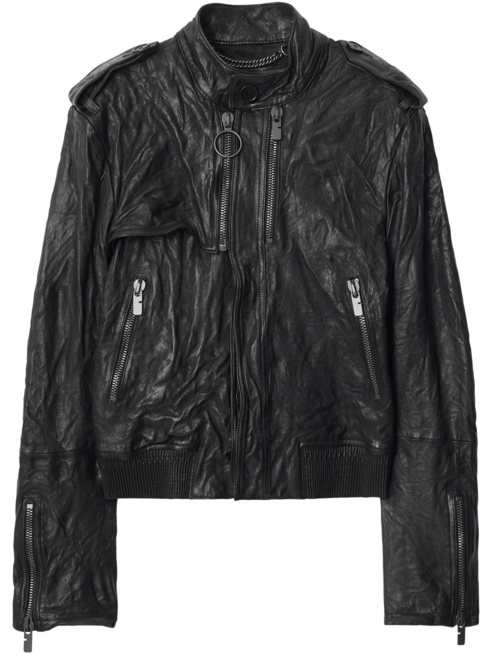 leather biker jacket Highlights - Black - Front zip fastening - Two side zip-fastening pockets - Cuff zips - Epaulettes Made in Italy Composition Lining: Viscose 100%, Cotton 100% Outer: Goat Skin 100%