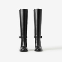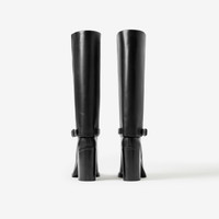 PRODUCT DETAILS An equestrian-inspired heeled silhouette, detailed with a logo-embossed ankle strap. - Heel height: 10cm/3.9in - Length from top of heel to top of boot: 36.5cm/14.4in - Top circumference: 36cm/14.2in Upper: 100% calf leather Lining: 90% calf leather, 6% polyester, 4% polyurethane Sole: 95% calf leather, 5% polyurethane Pull-on style with buckled ankle strap Almond-shaped toe Embossed Burberry lettering at ankle strap Made in Italy Item 80683891
