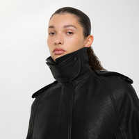 Product Details A structured cape crafted in Italy from supple leather, tumbled for a soft finish. The silhouette has a neat concealed closure and is finished with epaulettes and a throat latch, echoing elements from our iconic trench coat. Inside is a tonal quilted lining with Equestrian Knight Design label. - Two-way zip and press-stud closure - Throat latch - Epaulettes - Comes with a garment bag - Item 81222731 Size & Fit - Length: 67cm/26.4in (size UK S/M) - Model’s height: 178cm/5ft 10in Fabric & Care - Outer: 100% lambskin - Lining: 100% viscose - Filling: 100% polyester fibres - Specialist leather clean - Made in Italy