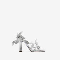 PRODUCT DETAILS Heeled sandals made in Italy from metallic leather. The wraparound straps are inspired by rose vines and feature handmade buds and foliage. - Heel height: 10.5cm/4.1in Upper: 100% sheep leather Lining: 100% sheep leather Heel: 100% sheep leather Sole: 100% leather Made in Italy Item 80865101