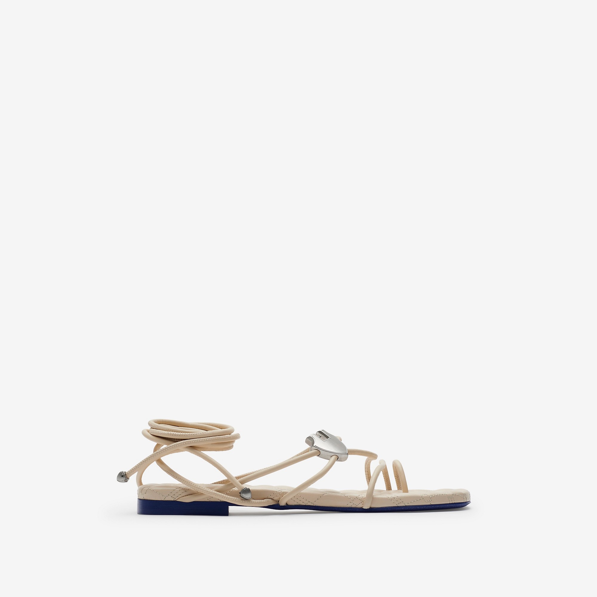 PRODUCT DETAILS Sandals made in Italy from nappa leather. The style features wraparound straps with a shield plaque inspired by the Equestrian Knight Design. Upper: 100% lambskin Lining: 100% sheep leather Sole: 100% leather Made in Italy Item 80889201