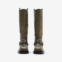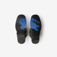Product Details Equestrian-inspired boots made in Italy from soft calf leather with B buckle straps. The leather sole is detailed with our Equestrian Knight Design in contrasting Knight Blue. - Buckled harness strap - Rounded toe - Equestrian Knight Design at the sole - Item 80970971 Fabric & Care - Upper: 99% calf leather, 1% polyester - Trim: 99% zinc alloy, 1% copper - Lining: 96% calf leather, 3% polyester, 1% polyurethane - Sole: 70% leather, 30% thermoplastic polyurethane - Made in Italy