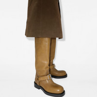 Product Details Equestrian-inspired boots made in Italy from soft calf leather with B buckle straps. The leather sole is detailed with our Equestrian Knight Design in contrasting Knight Blue. - Buckled harness strap - Rounded toe - Equestrian Knight Design at the sole - Item 80970951 Fabric & Care - Upper: 99% calf leather, 1% polyester - Trim: 99% zinc alloy, 1% copper - Lining: 96% calf leather, 3% polyester, 1% polyurethane - Sole: 70% leather, 30% thermoplastic polyurethane - Made in Italy