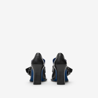 PRODUCT DETAILS Heeled loafers made in Italy from leather. The wide strap features a shield plaque engraved with the Equestrian Knight Design. - Heel height: 9cm/3.5in Upper: 100% leather Lining: 95% calf leather, 5% goat suede Sole: 95% calf leather, 5% thermoplastic polyurethane Made in Italy Item 80867711