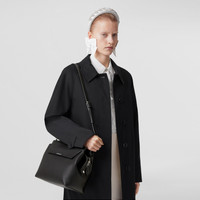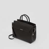 PRODUCT DETAILS A spacious day-to-night bag elevated in smooth Italian-tanned leather. The style is highlighted with our logo and crowned with geometric panels – their shape is inspired by the collar on our iconic trench. The design made its debut as part of the Burberry Autumn/Winter 2022 womenswear presentation and is named after Thomas Burberry’s wife and mother to his six children, Catherine. Carry by the reinforced top handles or detachable shoulder strap. - 28 x 13 x 23cm/11 x 5.1 x 9.1in - Handle drop: 8cm/3.1in - Min. shoulder strap drop: 41cm/16.1in - Max. shoulder strap: 46cm/18.1in Outer: 100% calf leather Trim: 100% calf leather Lining: 68% polyester, 32% polyurethane Leather top handles Detachable, adjustable shoulder strap Zip closure with press-stud sides Two exterior flap pockets, two interior slip pockets Hand-painted edges Polished metal hardware Embossed Burberry lettering at front Made in Italy Item 80610901