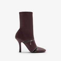 PRODUCT DETAILS Italian-made ankle boots in smooth nappa leather with zip openings. The design is set on a stiletto heel and leather sole embossed with the Equestrian Knight Design. - Heel height: 10cm/3.9in Upper: 100% lambskin Lining: 55% polyamide, 20% sheep leather, 15% elastane, 10% goat leather Sole: 100% leather Heel: 100% lambskin Made in Italy Item 80802471