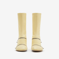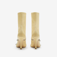 PRODUCT DETAILS Italian-made ankle boots in smooth nappa leather with zip openings. The design is set on a stiletto heel and leather sole embossed with the Equestrian Knight Design. - Heel height: 10cm/3.9in Upper: 100% lambskin Lining: 55% polyamide, 20% sheep leather, 15% elastane, 8% polyester, 2% polyurethane Sole: 100% leather Heel: 100% lambskin Made in Italy Item 80833981