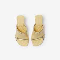 PRODUCT DETAILS Italian-made sandals in glossy calf leather with zip openings. The style is set on a stiletto heel and leather sole embossed with the Equestrian Knight Design. - Heel height: 8.5cm/3.4in Upper: 100% calf leather Lining: 100% sheep leather Sole: 100% leather Heel: 100% calf leather Made in Italy Item 80802531