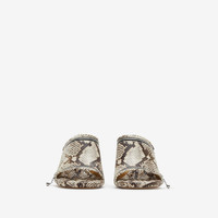 PRODUCT DETAILS Italian-made sandals in python print leather with zip openings. The style is set on a stiletto heel and leather sole embossed with the Equestrian Knight Design. - Heel height: 8.5cm/3.4in Upper: 100% calf leather Lining: 50% calf leather, 50% sheep leather Sole: 100% leather Heel: 100% calf leather Made in Italy Item 80802601