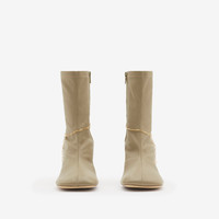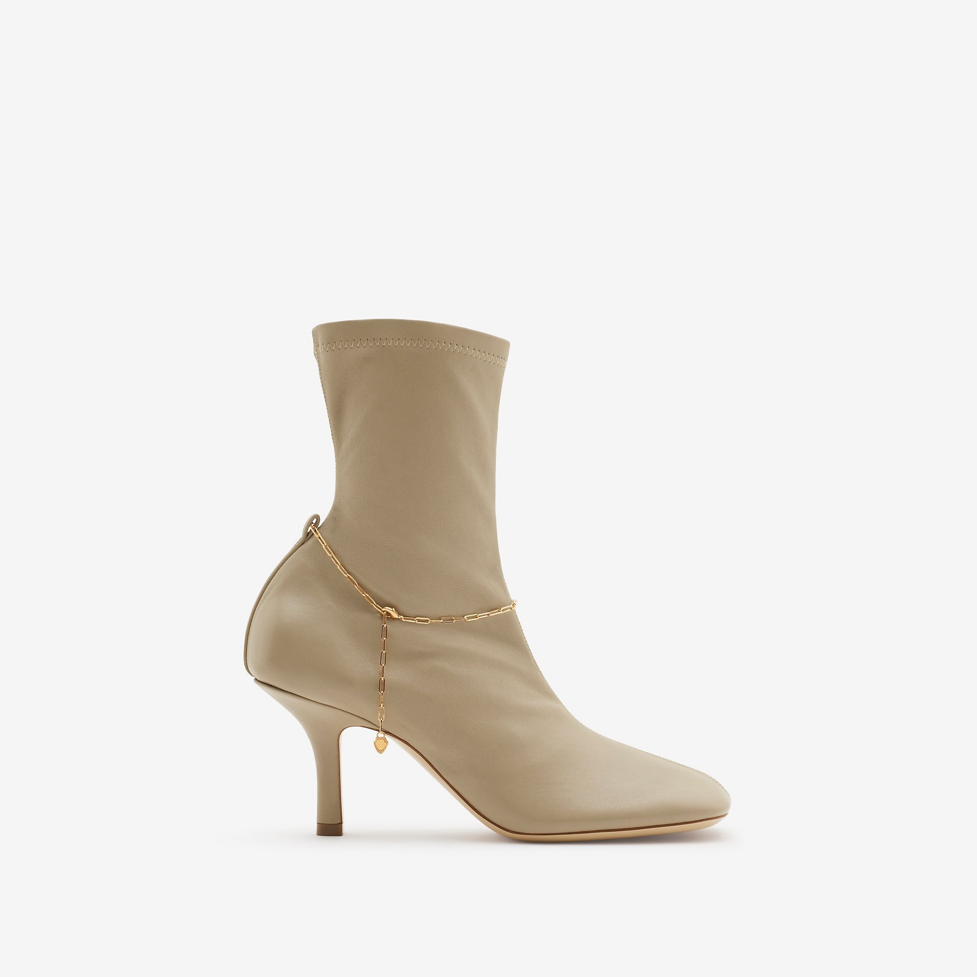 Product Details Ankle boots made in Italy from smooth leather. The legging-style design is set on a stiletto heel and is detailed with a detachable chain-link strap with a metal shield. - Zip closure - Squared toe - Stiletto heel - Equestrian Knight Design at sole - Comes with a dust bag - Item 80950171 Size & Fit - Heel height: 7.5cm/3in Fabric & Care - Upper: 100% lambskin - Trim: 100% brass - Lining: 45% cotton, 40% sheep leather, 10% goat suede, 5% elastane - Heel: 100% lambskin - Sole: 100% leather - Made in Italy