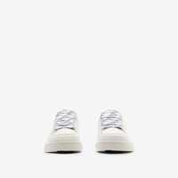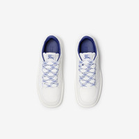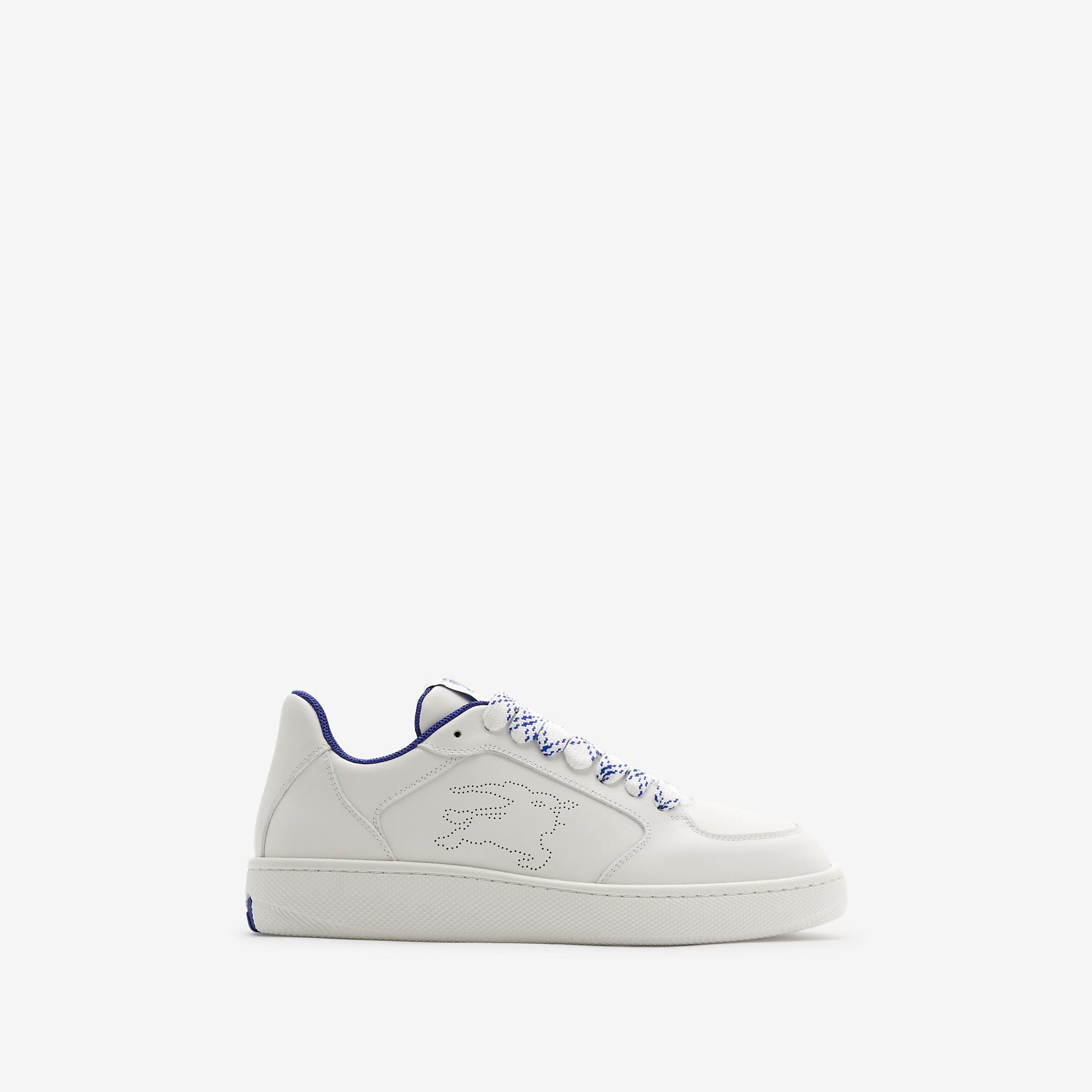 Product Details Italian-made sneakers in smooth calf leather perforated with our Equestrian Knight Design. The mesh-lined style features oversized check laces and rubber soles moulded with archive Burberry lettering. - Lace-up closure - Rounded toe - Equestrian Knight Design label at tongue - Leather insole - Burberry lettering at sole - Item 80956981 Fabric & Care - Upper: 100% calf leather - Trim: 100% polyester - Lining: 52% polyester, 40% calf leather, 8% goat suede - Sole: 100% thermoplastic polyurethane - Made in Italy
