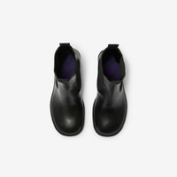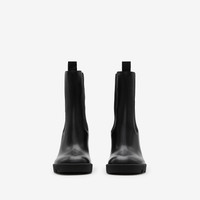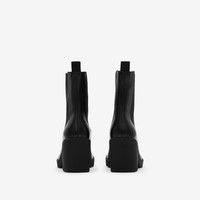 Product Details Italian-made Chelsea boots in smooth calf leather with pull tabs. The design is set on a block heel and chunky sole moulded with archive Burberry lettering. - Rounded toe - Check insole - Block heel - Burberry lettering at sole - Item 80765461 Size & Fit - Heel height: 8.5cm/33.5in Fabric & Care - Upper: 50% calf leather, 40% polyester, 10% elastane - Lining: 50% calf leather, 30% cotton, 15% polyester, 5% polyurethane - Sole: 100% thermoplastic polyurethane - Made in Italy