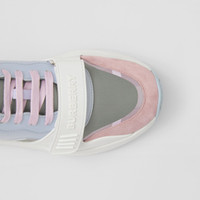 Leather, Suede and Check Nylon Sneakers
