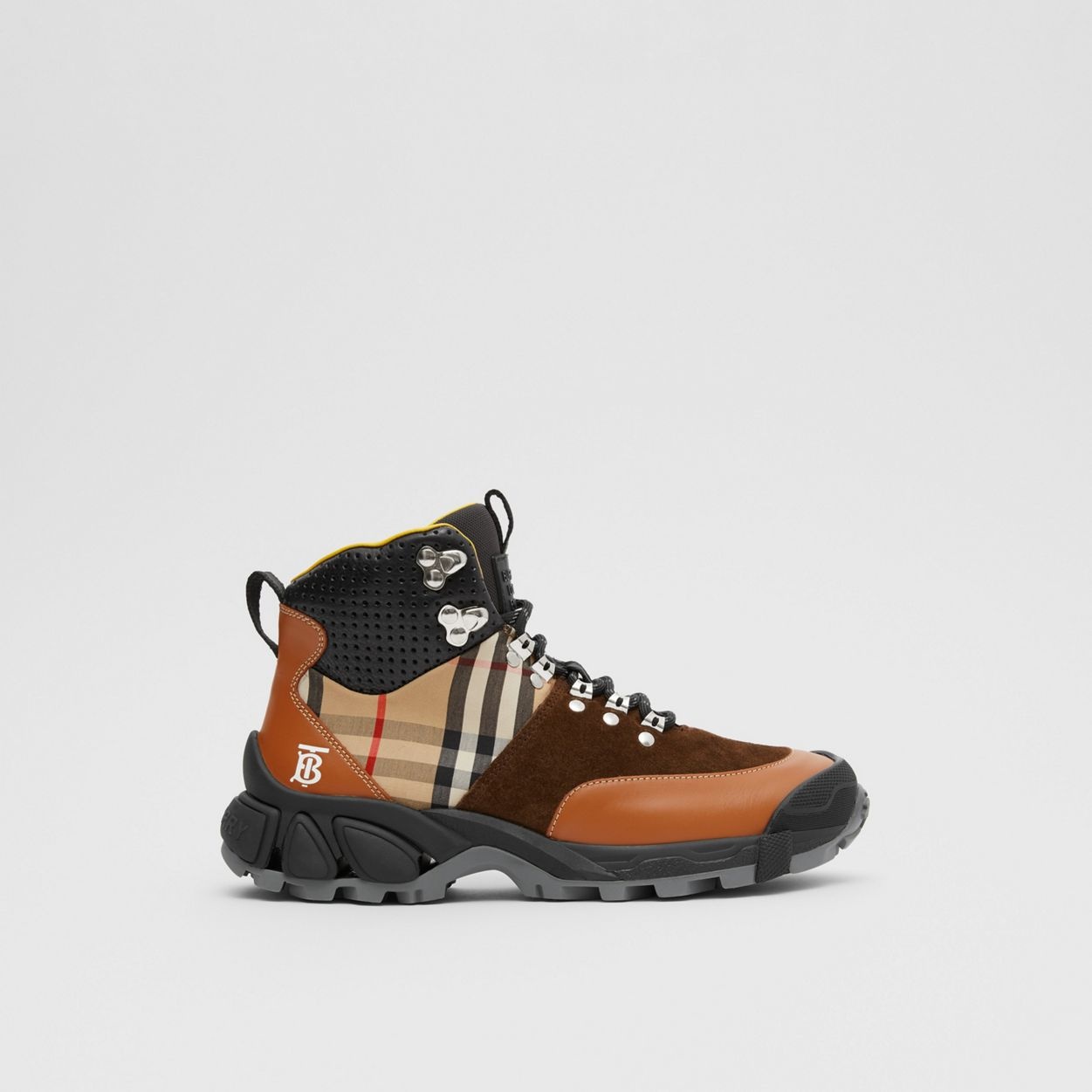 Leather, Vintage Check Cotton and Suede Tor Boots