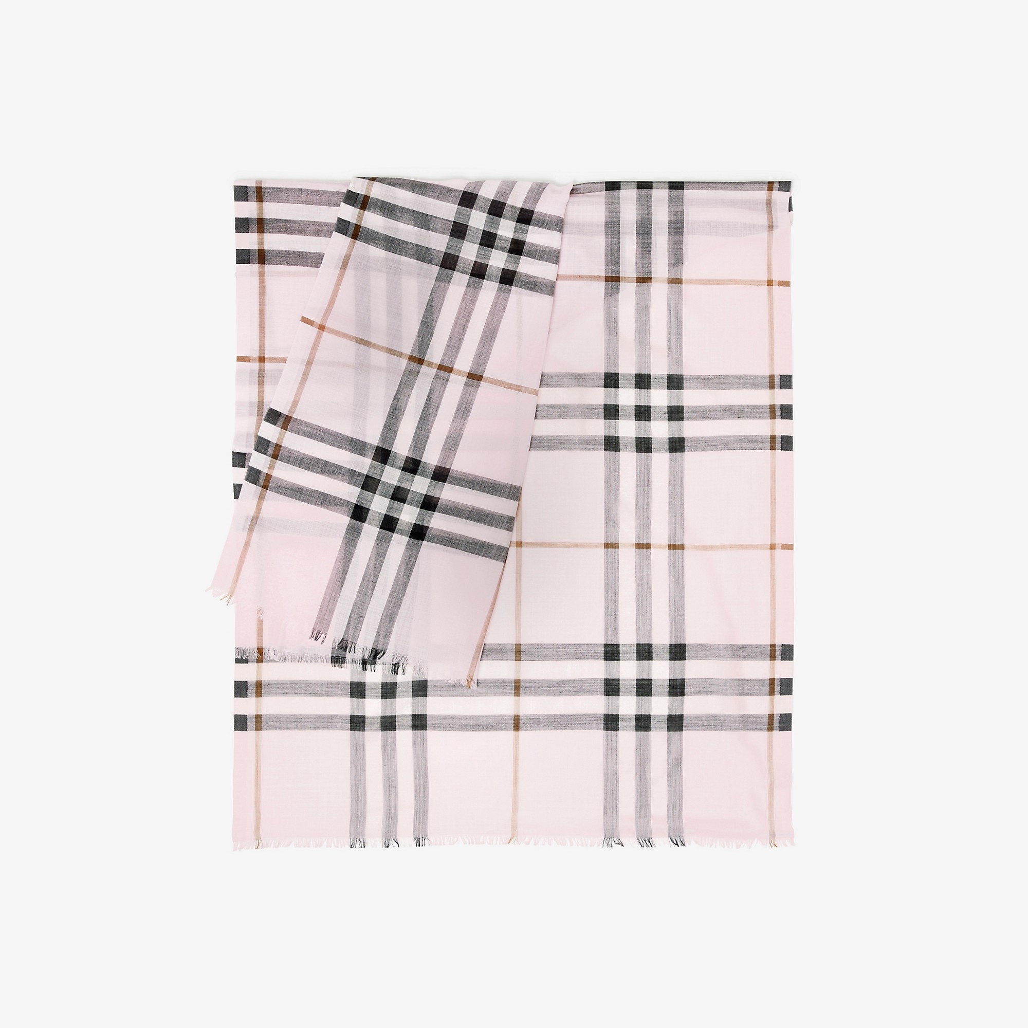 Product Details A wool-silk scarf in a lightweight gauze weave. The Italian-made design is patterned with the Burberry Check. - Rectangular - Eyelash fringing at the edges - *The wool in this product comes from farms which respect animal welfare. - Item 80787811 Size & Fit - 220 x 70cm/86.6 x 27.6in Fabric & Care - 51% wool, 49% silk - Dry clean - Made in Italy