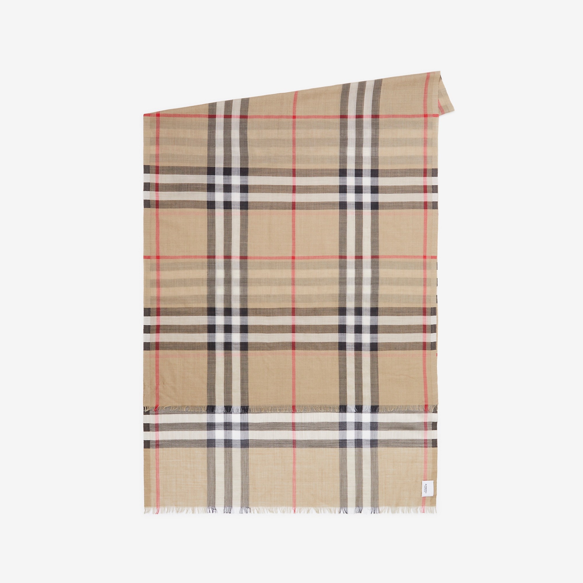 Product Details A wool-silk scarf in a lightweight gauze weave. The Italian-made design is patterned with the Burberry Check. - Rectangular - Eyelash fringing at the edges - *The wool in this product comes from farms which respect animal welfare. - Item 80558551 Size & Fit - 220 x 70cm/86.6 x 27.6in Fabric & Care - 51% wool, 49% silk* - Dry clean - Made in Italy