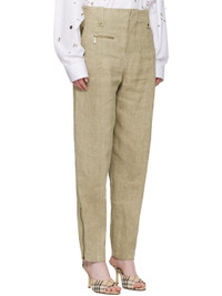 Loose-fit linen hopsack trousers. · Belt loops · Adjustable cinch tabs at waistband · Four-pocket styling · Zip fly · Central seam at legs · Zip vent at cuffs · Cinch tabs at back waistband · Partial plain-woven cotton lining · Antiqued gold-tone hardware Supplier color: Khaki/Milk Body: 100% linen. Lining: 100% cotton. Made in Italy 251376F087002