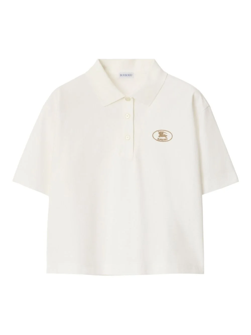 cropped cotton polo shirt Highlights - White - Short front button fastening - Short sleeves - Straight hem - Signature equestrian knight motif Imported Composition Cotton 100% Washing instructions Machine Wash