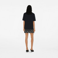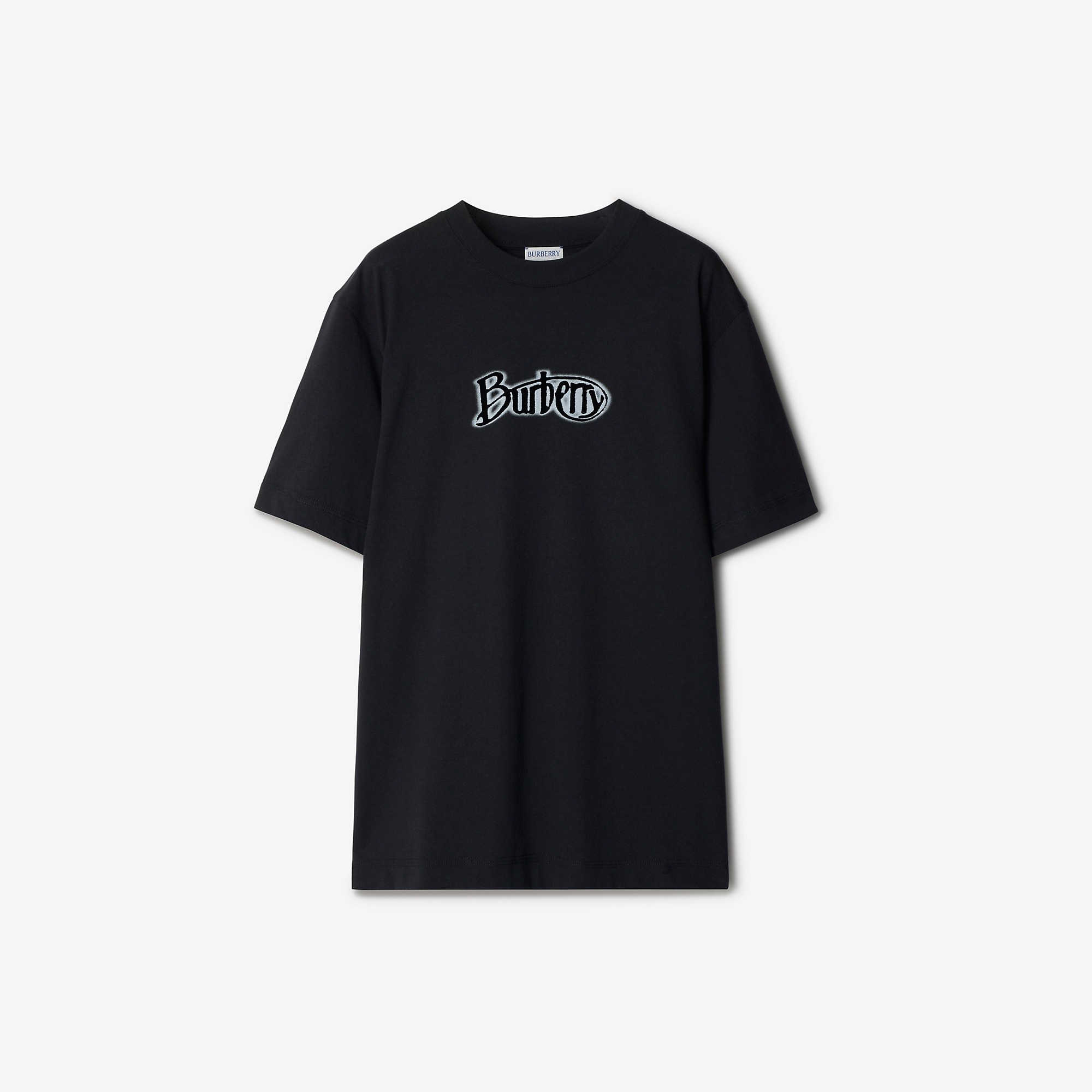 Product Details A cotton jersey T-shirt printed and flocked with an archival logo, first used in 1912 and updated with a distressed effect. The design is cut to a regular fit. - Rib-knit neckline - Flocked Burberry lettering - Regular fit. Fits true to size, take your normal size. - Machine wash - Item 80982041 Size & Fit - Length: 67.5cm/26.6in (size UK S) - Model’s height: 176cm/5ft 9in. Model wears size UK S Fabric & Care - 100% cotton - Trims: 97% cotton, 3% elastane; 100% polyamide - Made in Portugal
