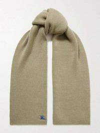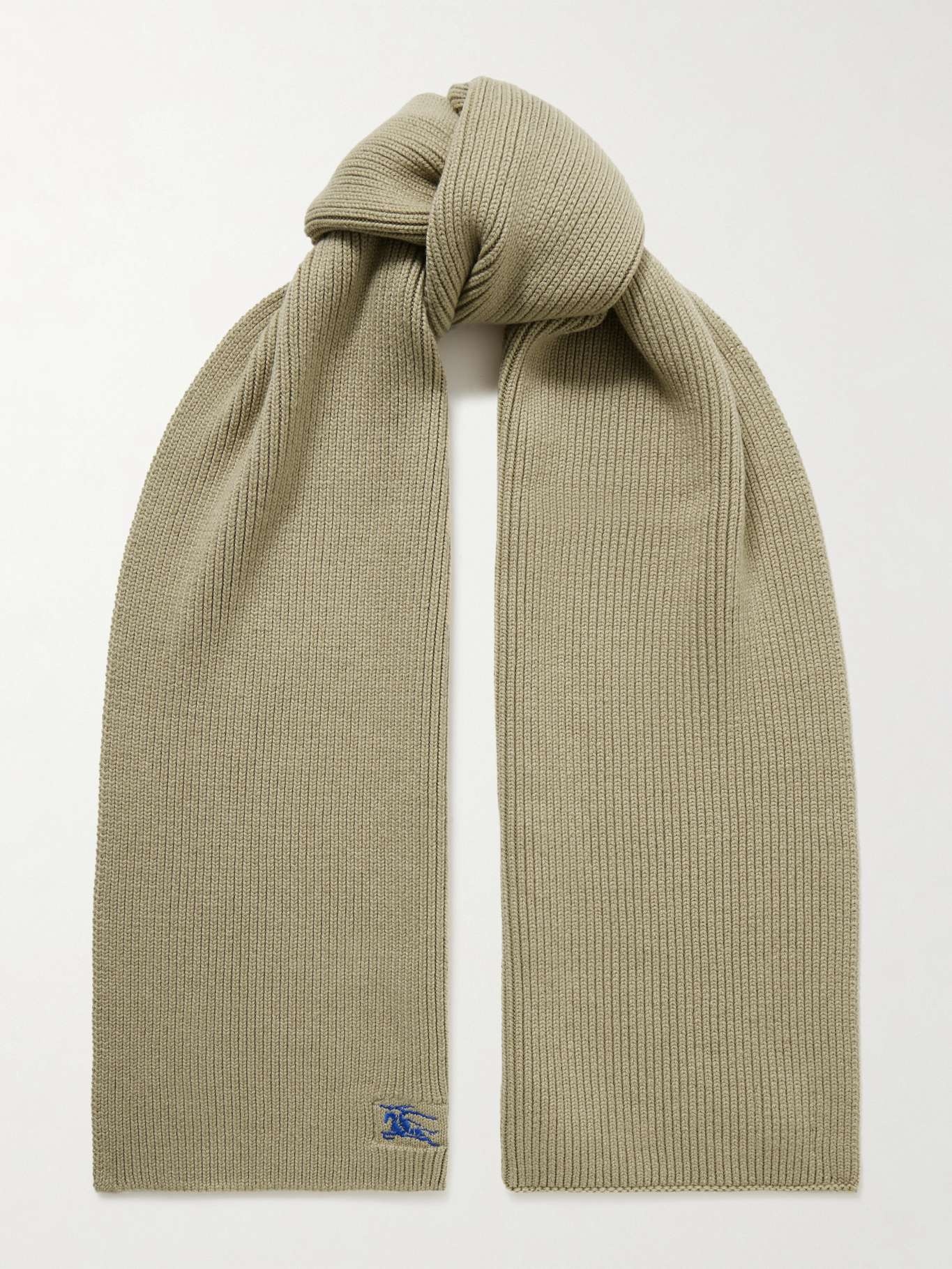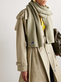 Logo-embroidered ribbed cashmere scarf