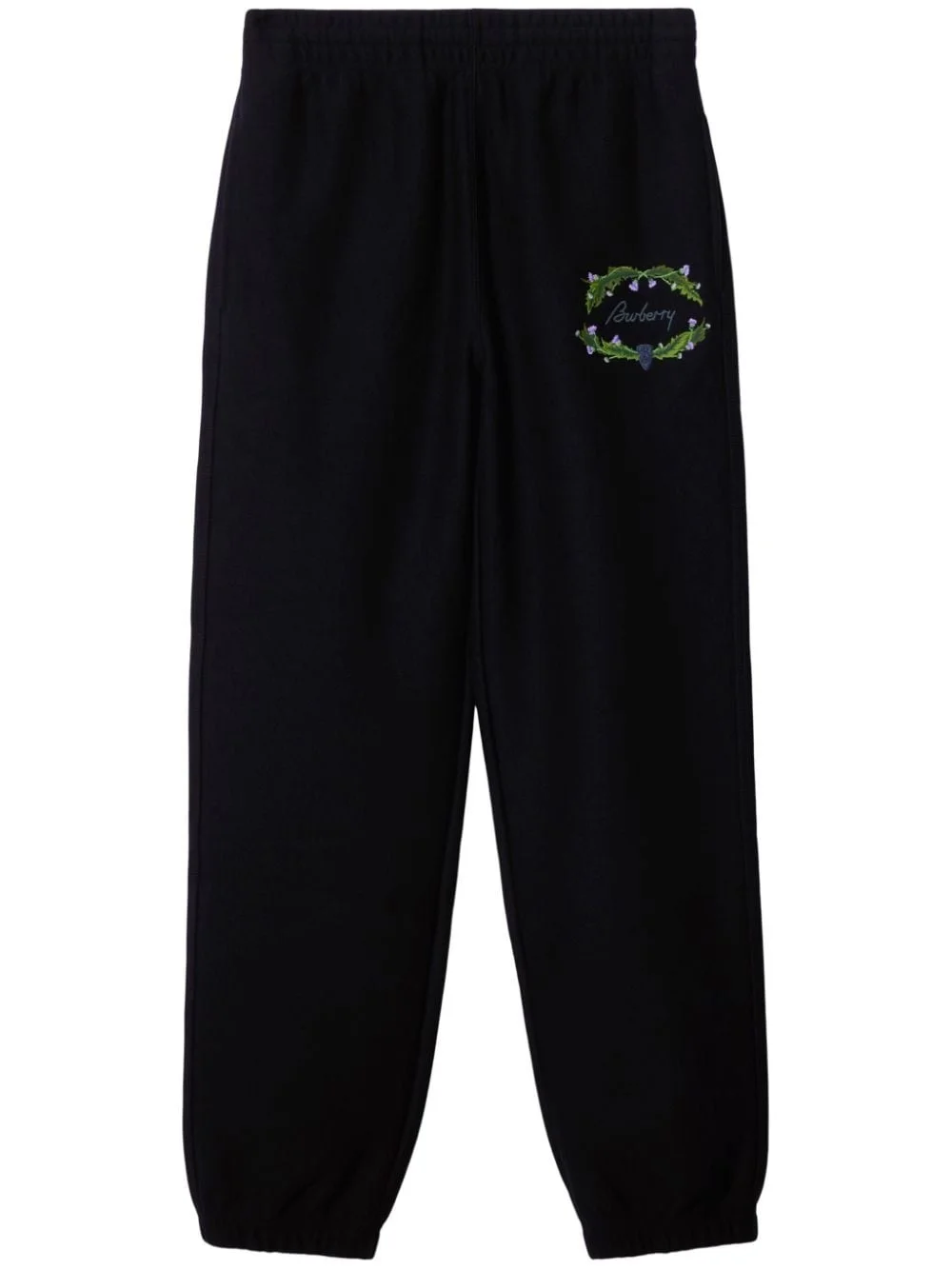 logo-embroidered track pants Highlights - Jet black - Cotton blend - Jersey texture - Embroidered logo to the front - Elasticated waistband - Floral embroidery - Elasticated ankles Imported Composition Outer: Cotton 94%, Polyester 6% Lining: Cotton 100% Washing instructions Machine Wash