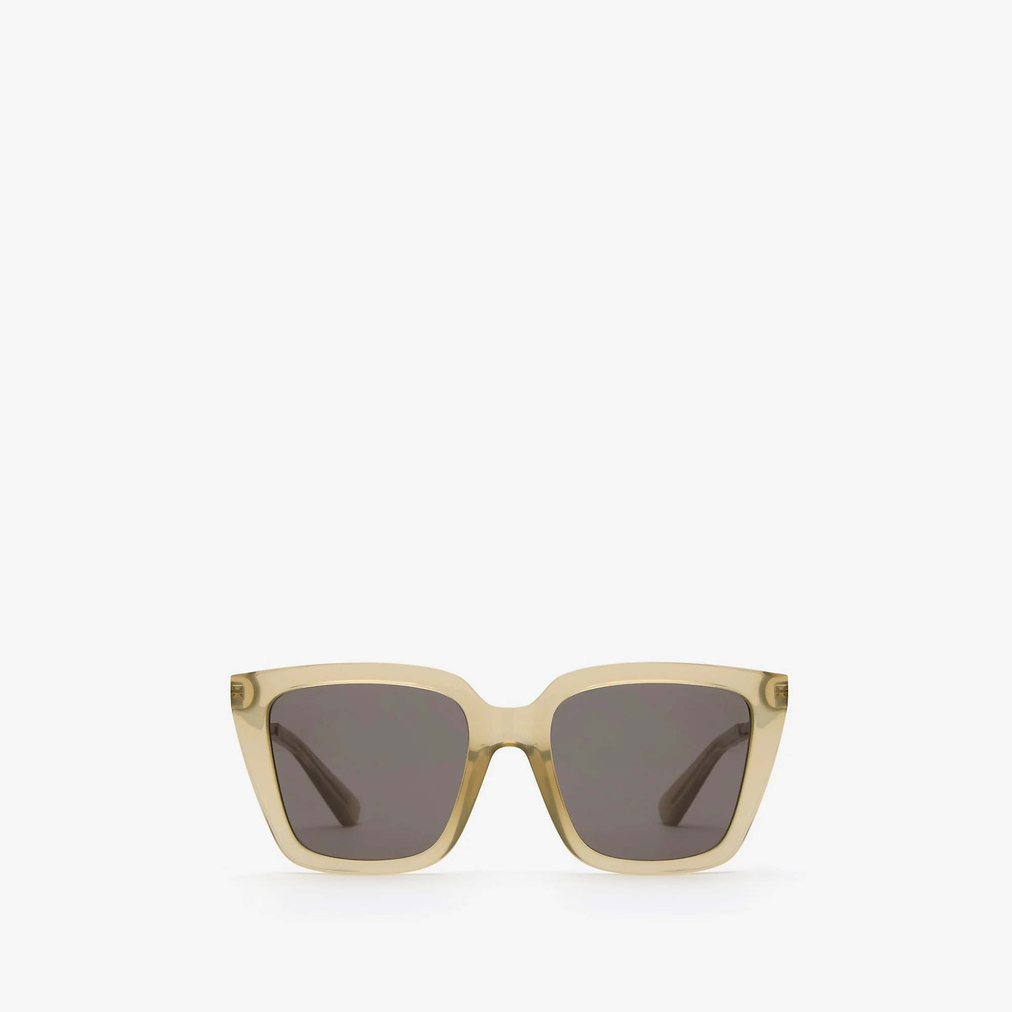 Product Details A pair of lightweight square-frame sunglasses made in Italy from transparent nylon. The contrasting metal temples are engraved with our signature check and logo. - Scratch-resistant brown lenses with 100% UV protection - Engraved Equestrian Knight Design at lens - Engraved Burberry lettering at temples - Comes with a hard leather case and cleaning cloth - Item 40849601 Size & Fit - Frame width: 14.3cm/5.6in. Frame height: 5.3cm/2.1in Fabric & Care - Frame: 100% nylon - Trim: 100% metal - Made in Italy