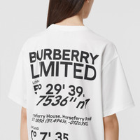 An oversized T-shirt in cotton jersey, printed with the geographical coordinates of our global HQ in Westminster, London. T-shirt length: 70cm/27.6in. This is based on a size UK S as proportions change slightly according to size. Model’s height: 180cm/5ft 11in. Model wears size UK L. 100% cotton Trim: 97% cotton, 3% elastane Machine wash Imported Item: 80372921