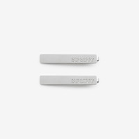 Product Details A pair of hair clips made in Italy from brass with palladium plating. The rectangular style is engraved with the Burberry logo. - Item 81084181 Size & Fit - 6.5 x 1 cm/2.6 x 0.4in Fabric & Care - 100% brass with palladium plating - Made in Italy