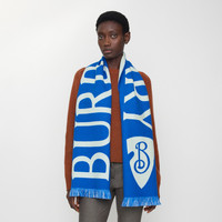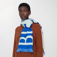 Product Details A two-tone scarf made in Italy from wool, jacquard-woven with Burberry lettering and the B shield, a motif inspired by our Equestrian Knight Design. - Rectangular - Eyelash fringing at both ends - Item 81129821 Size & Fit - 168 x 33cm/66.1 x 13in Fabric & Care - 100% wool - Specialist dry clean - Made in Italy