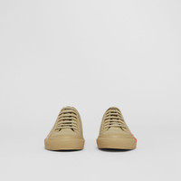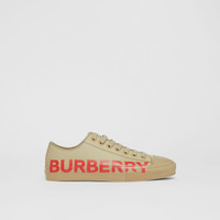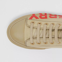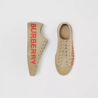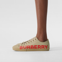 Cotton gabardine sneakers tagged with our logo in a contrasting tone. Upper: 100% cotton Lining: 100% sheep leather Sole: 100% rubber Lace-up closure Printed Burberry lettering at side Imported Item: 80376491