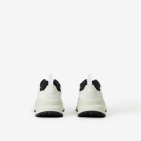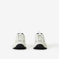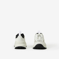 PRODUCT DETAILS A chunky sneaker panelled in leather, suede and Vintage Check mesh. The style is highlighted with our logo and embroidered Thomas Burberry Monogram motif at the heel. The design is set on an accentuated, curved sole. Upper: 31% cotton, 31% polyester, 18% leather, 17% calf suede, 2% polyurethane, 1% polyamide Trim: 45% polyester, 30% polyurethane, 25% polyamide Lining: 62% polyester, 35% sheep leather, 3% polyurethane Sole: 100% rubber Lace-up closure Printed Burberry lettering at side Made in Italy Item 80634701
