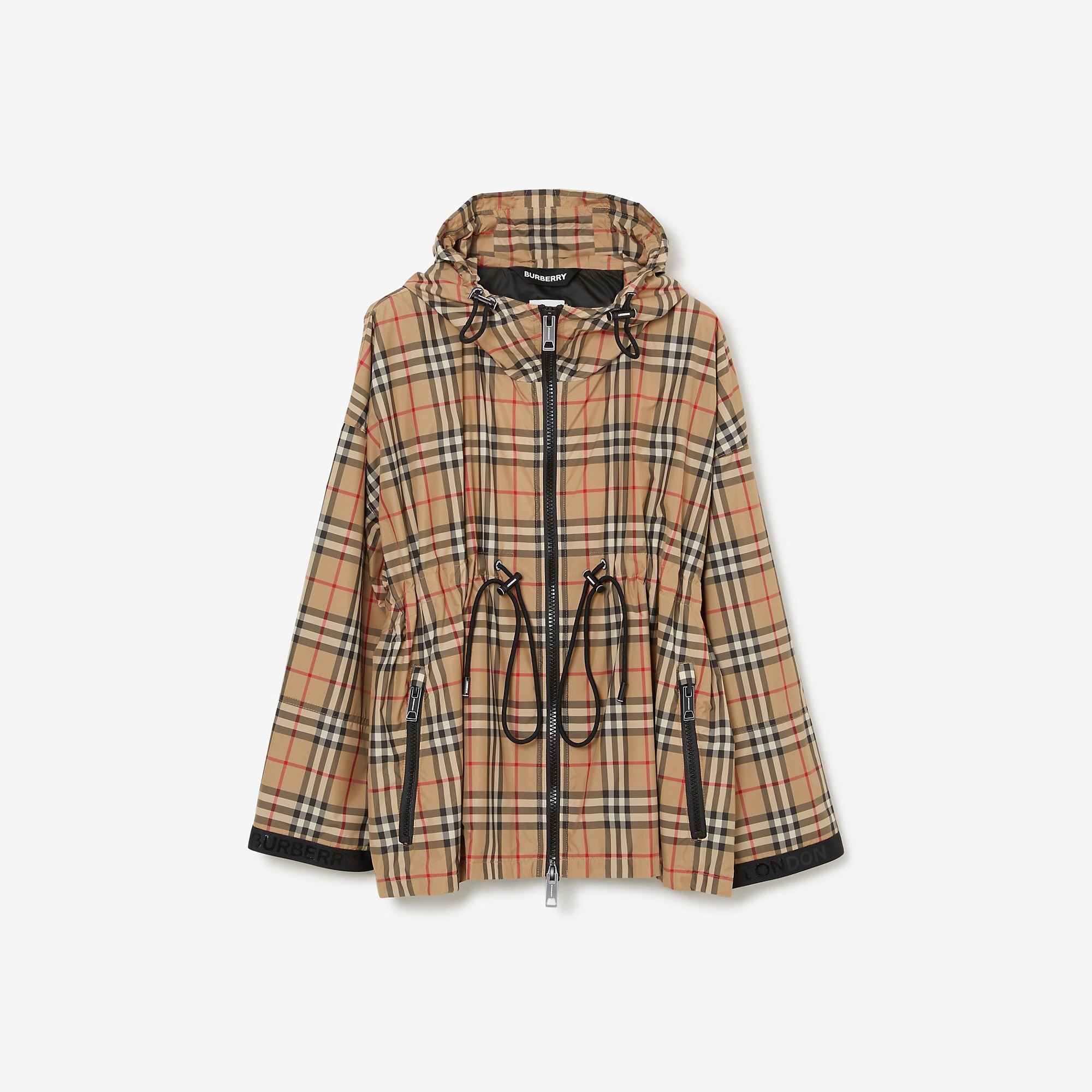 PRODUCT DETAILS A hooded jacket in Burberry Check, highlighted with logo-tagged taping and cinched with a drawcord waist. - Jacket length: 65.5cm/25.8in. This is based on a size UK 8. - Model’s height: 180cm/5ft 11in. Model wears size UK 6. Relaxed fit. This style is cut to a loose silhouette. Outer: 100% polyester Lining: 100% polyester Two-way zip closure Side zip pockets Drawcord hood and waist Specialist dry clean Imported Item 80322101