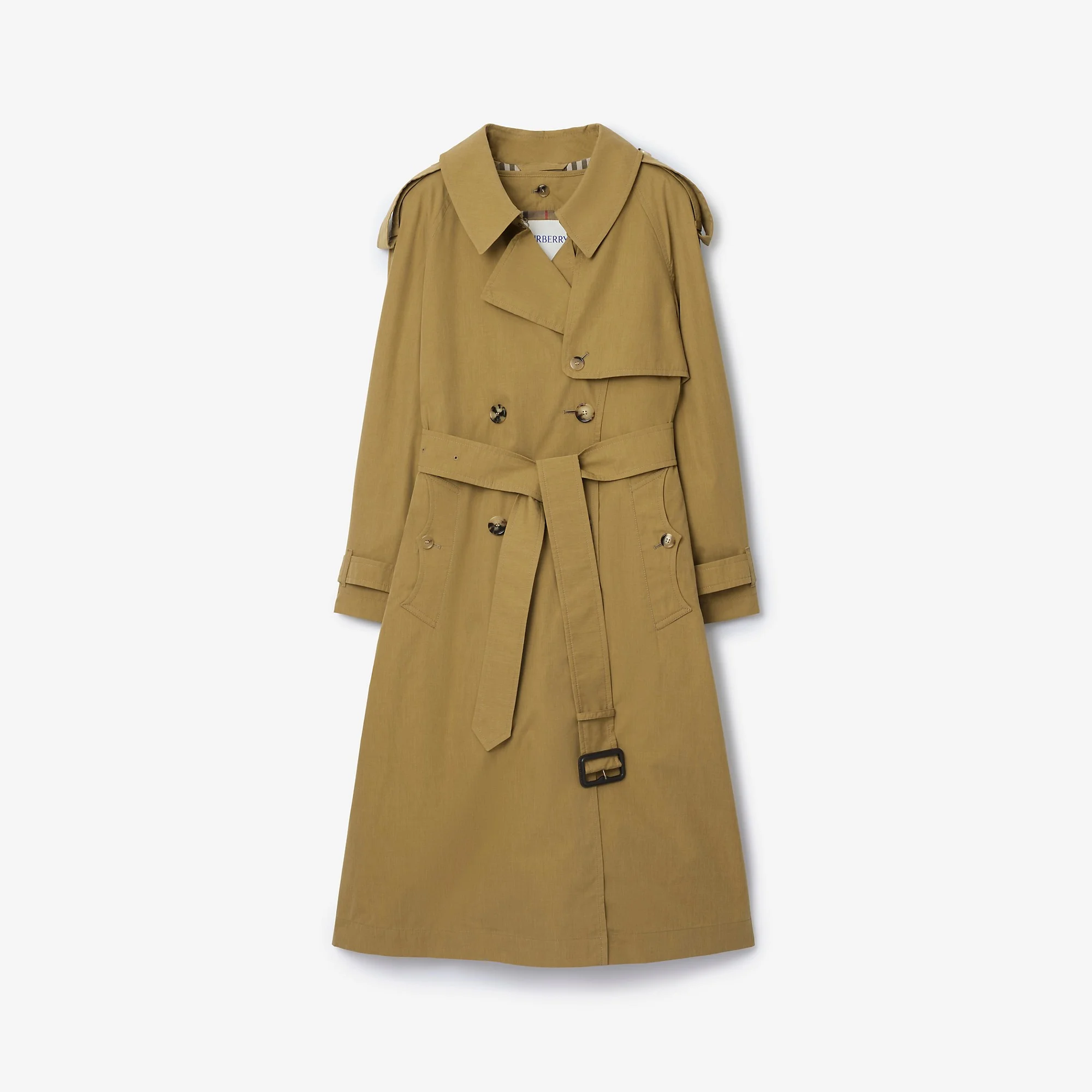 Product Details Relaxed fit: a looser cut than our regular fit. Adding volume to our signature rainwear, the Fitzrovia trench coat is cut from a lightweight cotton blend canvas, treated for a soft hand feel. The A-line style is shaped to a relaxed fit, featuring wider sleeves and a fuller skirt. Raglan construction gives a softer line at the shoulders while an archival trench inspires the curlicue shape of the pockets. Inside is a detachable quilted warmer woven with the Burberry Check, ideal for layering up on colder days. - Double-breasted button closure - Hook collar closure - Throat latch - Epaulettes - Storm shield at back - Gun flap at shoulder - Leather B buckle belt and cuffs - Side button welt pockets - Back button vent - Burberry Check undercollar - Detachable Burberry Check warmer - Comes with a garment bag - Item 81185571 Size & Fit - Relaxed fit: a looser cut than our regular fit. - Length: 114cm/44.9in (size UK 6) - Model’s height: 180cm/5ft 11in. Model wears size UK 6 Fabric & Care - Outer: 67% polyester, 33% cotton - Undercollar: 100% cotton - Lining: 100% cotton - Sleeve lining: 100% cupro - Warmer outer: 67% polyester, 33% cotton - Warmer lining: 100% cotton - Warmer filling: 100% polyester - Buckles: 100% calf leather - Buttons: buffalo horn - Specialist dry clean - Imported