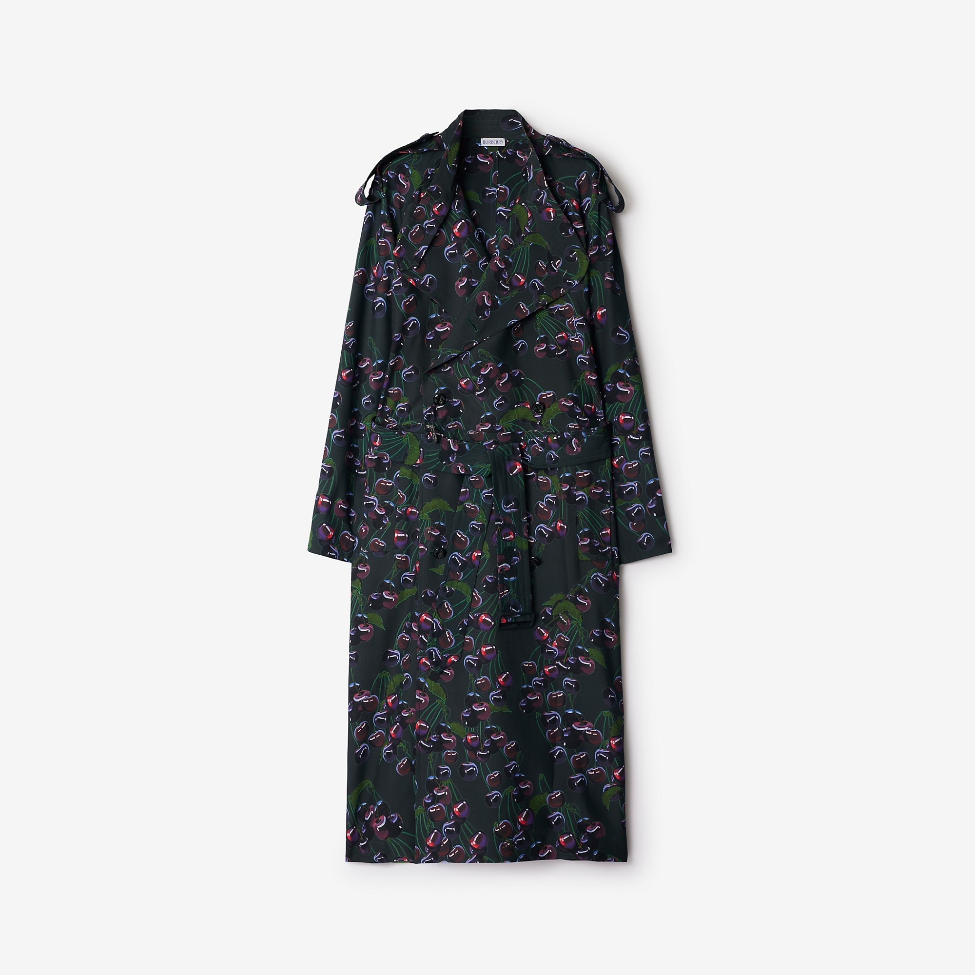PRODUCT DETAILS A trench coat made in Italy from fluid viscose, printed with a hand-painted cherry artwork. Cut to an oversized fit, the style features a B-cut zip at the waist to adjust the silhouette. - Length: 123cm/48.4in (size UK 6) - Model’s height: 177cm/5ft 10in. Model wears size UK 6 Oversized fit: our loosest cut, designed for exaggerated proportions. We recommend sizing down. 100% viscose Trim: 100% cotton Buttons: buffalo horn Specialist dry clean Made in Italy Item 80889281