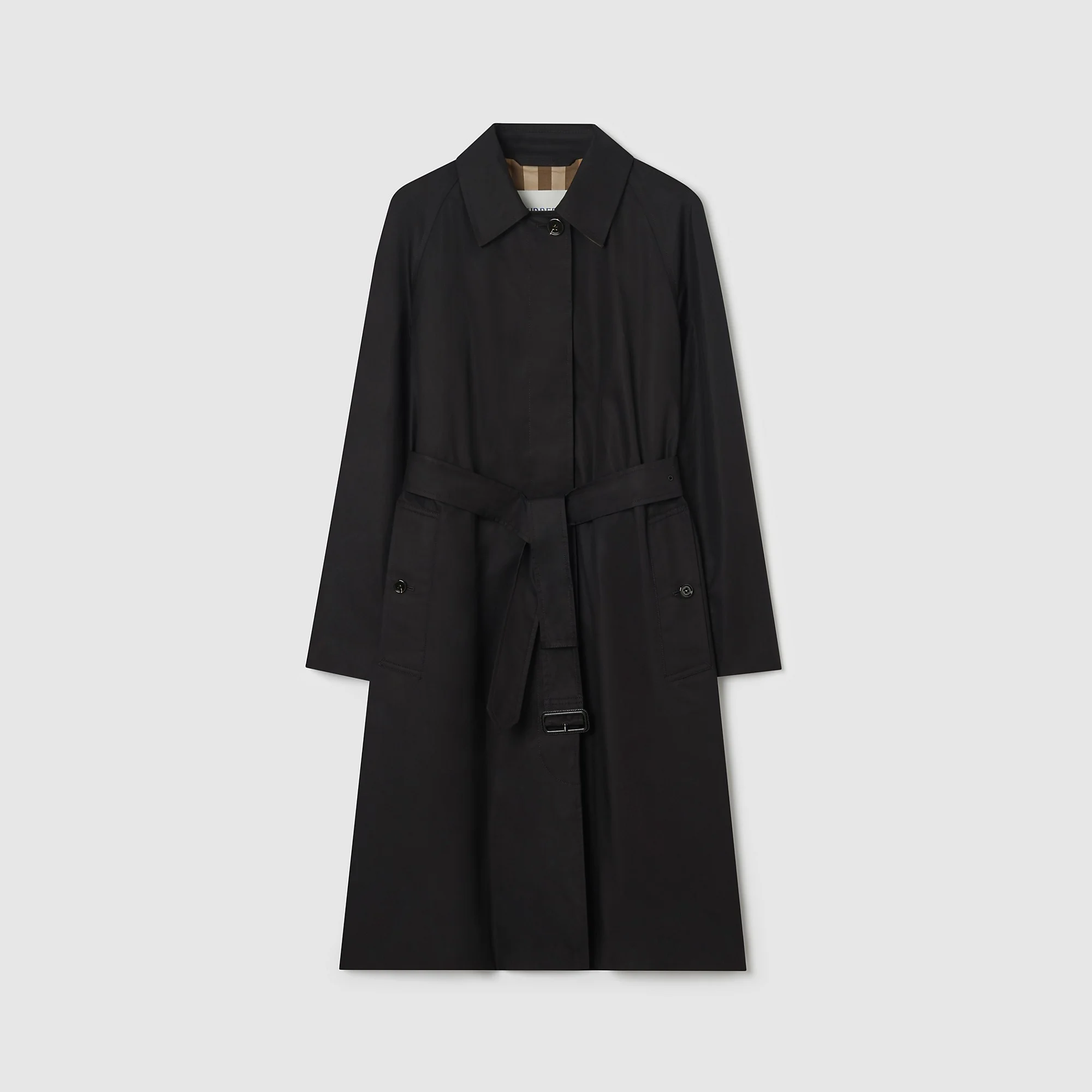 Product Details Relaxed fit: a looser cut than our regular fit. Inspired by our heritage styles, a car coat crafted in cotton twill and lined with the Burberry Check. The style is tailored to a relaxed fit with a neat concealed closure and belt to adjust the fit. - Button closure - Self-tie belt - Side button welt pockets - Button-tab cuffs - Back button vent - Burberry Check lining and undercollar - Item 81216591 Size & Fit - Relaxed fit: a looser cut than our regular fit. - Length: 105cm/41.3in (size UK 8) Fabric & Care - Outer: 100% cotton - Lining: 100% cotton - Sleeve lining: 100% polyester - Buckle: 100% calf leather - Specialist dry clean - Imported