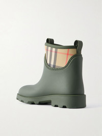 Checked nylon-paneled rubber ankle boots Army green